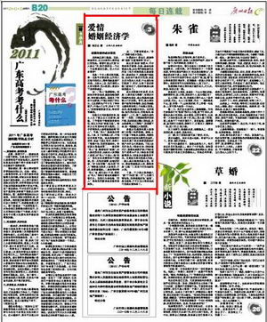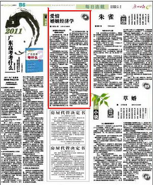 《廣州日報》連載《愛情婚姻經濟學》之一