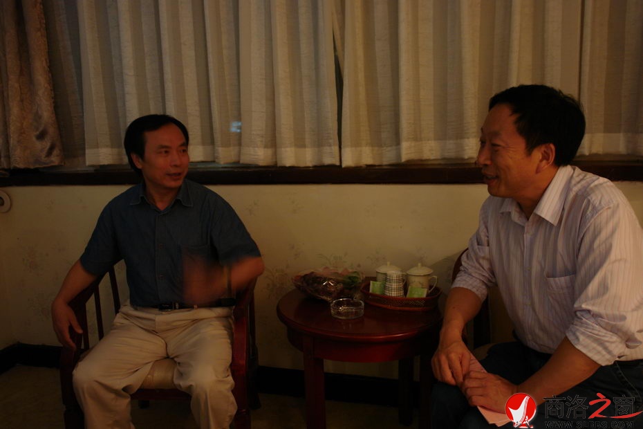 26日晚商洛日報社社長何鄧與中國地市報工作委員會秘書長呂道寧討論會議議程及安排情況