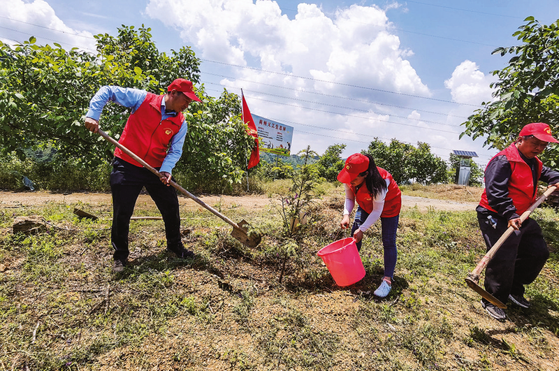 王丹軍(左一)組織志愿者義務栽植紅豆杉