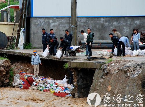 連日來的強降雨致使洛南縣黃龍河暴漲,對靠近河邊九龍公司橋河選廠一處廠房造成威脅,公司冒雨組織工人,采取填充沙袋加固根基排險。