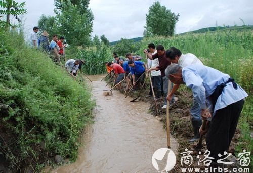 7月22日至24日,洛南遭受暴雨洪水襲擊,造成全縣部分鄉鎮道路損毀、作物受災、電力通訊中斷,災情發生后,縣上領導立即奔赴受災一線查看災情,組織群眾開展自救。圖為城關鎮尖角村群眾疏通渠道,排放玉米地里的積水。