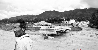 山陽(yáng)縣城寇家溝大橋在昨日上午10時(shí)許被洪水沖垮 胡國(guó)慶攝