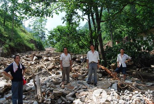 就在他返回半山坡時,只聽轟隆隆一聲巨響,像爆炸一樣,溝垴山坡突然暴發的泥石流,瞬間使整個山溝揚起一片泥色迷霧。只聽一陣“卡啦、卡啦”的響聲過后,泥石流就沖到對面的山坡,又折回頭沖向他這邊。他前面不遠處的一排房子“像風吹紙片”一樣全部倒了,沒有來得及逃離的大人孩子瞬間被掩埋得無影無蹤。他連忙從半山坡上繞過去救人。