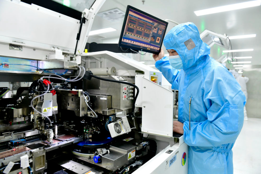 2025年2月13日,在山東一家電子有限公司,工作人員在生產線值守。新華社記者 郭緒雷 攝