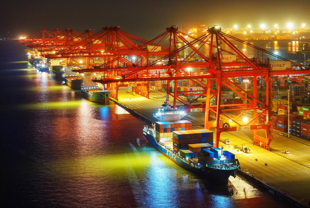 2024年12月14日晚拍攝的江蘇省連云港港集裝箱碼頭(無人機照片)。新華社發(王健民攝)