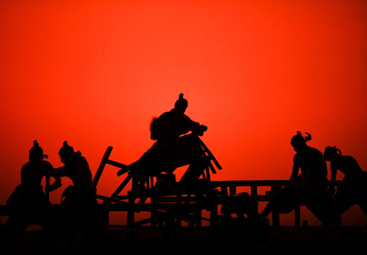 大型歷史舞臺(tái)劇《赳赳大秦》演出現(xiàn)場(chǎng)(2024年9月25日攝)。新華社記者張博文攝