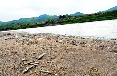 昨日,記者根據群眾提供的線索,從發現有死魚的丹江河下游最近的三個鎮——商洛市商州區沙河子鎮、張村鎮、白楊店鎮開始,沿河走訪調查。