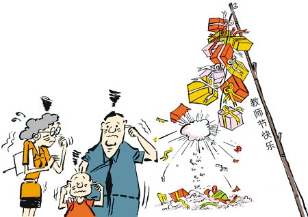網(wǎng)友“臨窗對雨”的一片博文寫出了不少老師的心聲。“每到教師節(jié),學(xué)生的祝賀卡片像雪花一樣飛來,自然是滿懷喜悅。可是,我也總是為家長送來的禮物而苦惱。總會(huì)面對喜歡送禮的家長,盡管有些家長幾年來沒有向我送過一件禮物,我也會(huì)對他的孩子一視同仁。”他說,做教師最大的快樂,是得天下英才而育之。而最大的欣慰,莫過于多少年以后,當(dāng)初你教育過的學(xué)生依然深深地記住你這位老師。而家長的禮物,卻在其中扮演著極不光彩的角色。