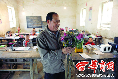 這所學(xué)校是復(fù)式班,共11名學(xué)生,為一、四兩個(gè)年級(jí)。下午上課后,第一個(gè)上場(chǎng)送花祝福李老師節(jié)日快樂(lè)的是班長(zhǎng)王杰。“老師,我送您一朵野菊花,祝您節(jié)日快樂(lè)!”接下來(lái),10個(gè)同學(xué)依次送花祝福。當(dāng)輪到一年級(jí)的王磊祝福時(shí),光說(shuō)了一句“老師,我送您一朵野花”就卡殼說(shuō)不出祝福語(yǔ)了,引得滿堂大笑。