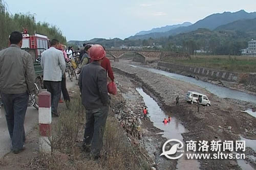 出事的車(chē)輛系銀灰色面包車(chē),車(chē)牌號(hào)為“陜H22396”。據(jù)目擊群眾稱(chēng),面包車(chē)是沖斷路邊護(hù)欄,從5米多高的河堤上沖下去的。