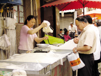 本網(wǎng)訊(蔡少娥)近日,記者在商州區(qū)北新街客都超市看到顧客在買新鮮面條時居然用手隨便抓。