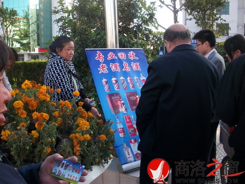 一個(gè)60歲左右的老人拿著兩瓶酒正要賣給收購(gòu)的人,收購(gòu)者說(shuō):"這瓶酒是84年的茅臺(tái)價(jià)值2000元,可惜你沒有好好收藏把瓶蓋子的封膜弄爛了,所以不能收購(gòu)了。"這個(gè)婦女還向四周的群眾散發(fā)她的名片說(shuō)能上門服務(wù),現(xiàn)金交易。當(dāng)下就有不少群眾表示回去以后看看家里有沒有"古董酒",會(huì)聯(lián)系收購(gòu)人。