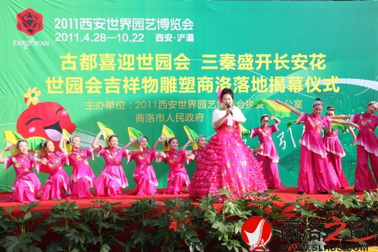 本網訊 (記者 崔旭紅) 12月3日,2011年西安世園會吉祥物"長安花"雕塑落地商洛儀式在市中心廣場舉行。
