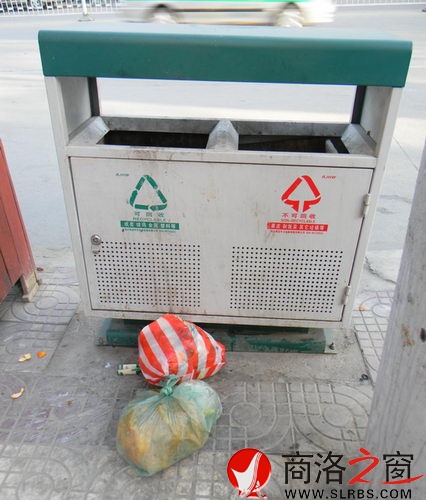 本網訊 (記者 劉 蕾)12月21日,記者走到工農路龍泉小區路口時,看到一個垃圾箱前放著幾袋垃圾。記者很費解,明明已經提到了垃圾箱旁,為什么不把垃圾扔進去呢?"有的住戶經常往這扔垃圾,有的直接就扔進垃圾箱了,有的走到跟前,就隨手扔到地上。"旁邊做生意的老板告訴記者。負責打掃附近衛生的清潔工說,她對這種情況很無奈,不知道為什么都到了垃圾箱旁卻還將垃圾扔在旁邊。自己只能看到了打掃一下,希望市民今后都能將垃圾扔進垃圾箱,舉手之勞,商州更美。