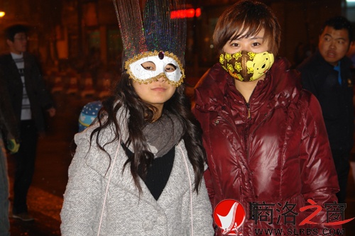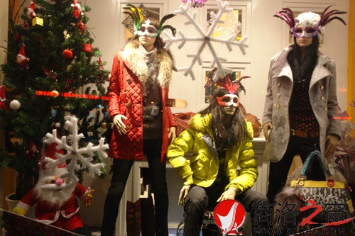年輕的情侶們頭戴圣誕帽,迎著雪花,相互依偎著穿梭在市區的大街小巷,充滿甜蜜。過往的路人,戴著點綴著翎毛的面具,拿著噴雪,多彩的噴雪在路燈、店鋪的燈光下熠熠生輝。