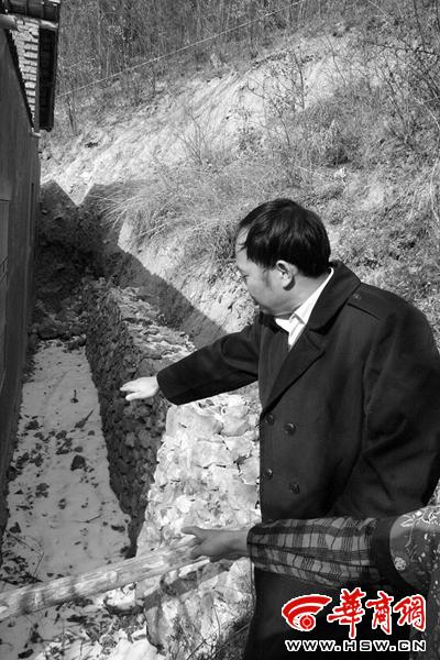 彭家讓在已經壘砌了1米高的石坎護坡處回訪