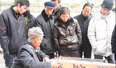 一位老人的書法引起眾多市民關注