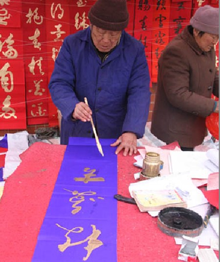 街頭潑墨書寫春聯
