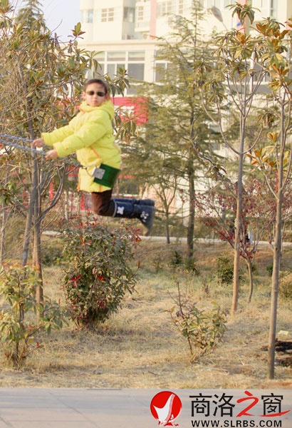蕩秋千,很傳統的玩法,不也樂在其中??矗@孩子還給了新的創意元素。