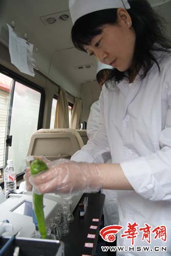 農產品的質量安全也是群眾關心的問題,在會議現場記者看到一輛農業產品質量檢測車,工作人員正在忙碌的檢測商州本地出產蔬菜的質量。一檢測員告訴記者,“經過我們長期檢測,商州區本地出產蔬菜全部符合無公害農產品標準,并且各項指標明顯好于外地蔬菜。”(華商網)