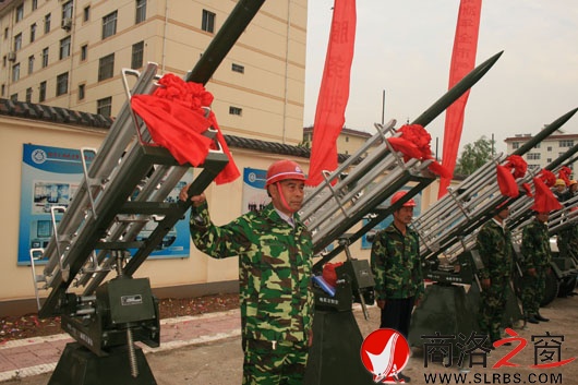 本網訊 (劉娜 李小龍/攝) 五月十一日,市氣象防災減災應急指揮部揭牌暨市人工影響天氣新型作業裝備集中發放儀式舉行。并為各縣區發放了價值二百二十四萬的新型人工防雹增雨火箭發射架和人影作業指揮車。