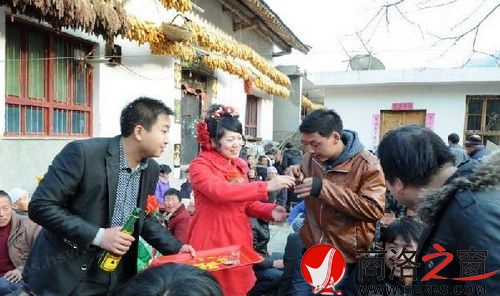 本網訊 (商洛老全 攝)近日,在商洛農村一處普通的農家小院,一對新人結婚了,鄉親們都來喝喜酒。酒很低廉,菜很簡單,但鄉親們很高興,整個山村都沉浸在喜慶中,房檐下金黃的玉米也見證著山村愛情。