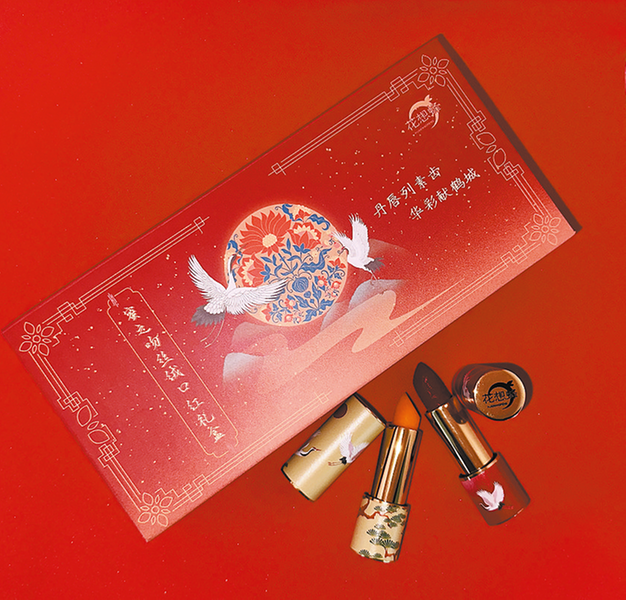 為了在博覽會上出彩,公司特意推出七夕節限定口紅禮盒,口紅有999正紅色和豆沙色,潤唇膏則由蜂王漿的提取物制作而成,具有抗菌消炎、美容養顏的作用。“目前,國風文化盛行,為滿足消費者的審美需求,在產品設計上我們也花了一番心思,你看這個口紅膏體上雕刻著牛郎織女,既代表一個美好的寓意,又增加了產品的文化底蘊。”魏坤說。