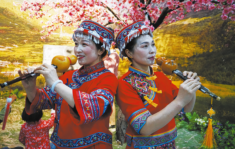 如水的月光下,如霧的竹林里,合唱團(tuán)演出的《月光下的鳳尾竹》輕柔舒緩,動(dòng)人心弦,令觀眾沉醉其中。據(jù)領(lǐng)隊(duì)王玉燕介紹,王菊霞今年69歲,是合唱團(tuán)年紀(jì)最大的成員。“我4年前跟大家一起吹葫蘆絲,一開始我們經(jīng)常在公園學(xué)習(xí)、練習(xí),到了第3年,陸續(xù)有人邀請(qǐng)我們演出,能結(jié)緣葫蘆絲,認(rèn)識(shí)這些朋友,我很榮幸!”王菊霞說。金樂山今年61歲,是一名轉(zhuǎn)業(yè)軍人,他告訴記者,他年輕時(shí)就有一個(gè)音樂夢(mèng),只是忙于工作和家庭,暫時(shí)擱置了。現(xiàn)在他已經(jīng)退休,有充足的時(shí)間,兩年前看到朋友在吹葫蘆絲,他很高興地加入了合唱團(tuán)。“吹了葫蘆絲,新朋友多了,精神頭好了,煩惱、痛苦都少了。”金樂山高興地說。