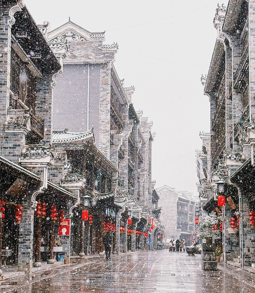 2月22日,風(fēng)雪中的山陽縣漫川古鎮(zhèn)別有一番風(fēng)情。(本報通訊員 陳豐武 攝)