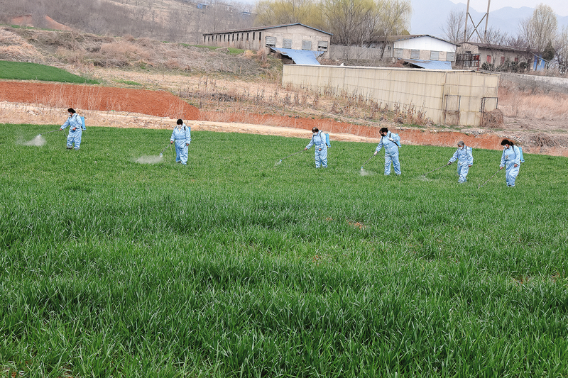 3月12日,丹鳳縣農技中心、丹鳳縣老科教協會組織專業技術人員,在龍駒寨街道古城村古城嶺小麥集中種植示范區開展麥田化除防治示范活動。目前,全縣化除防治麥田超過1000畝。 (本報通訊員 劉春榮 攝)