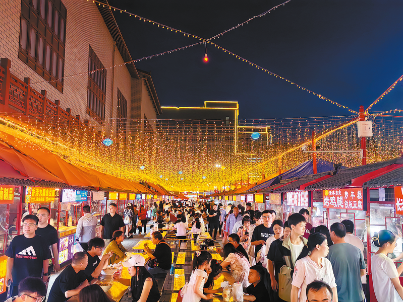 5月12日晚,在充滿了煙火氣的商州夜市,暖黃的燈光下香味撲鼻的美食給予人們心靈慰藉,點燃了味覺的狂歡。