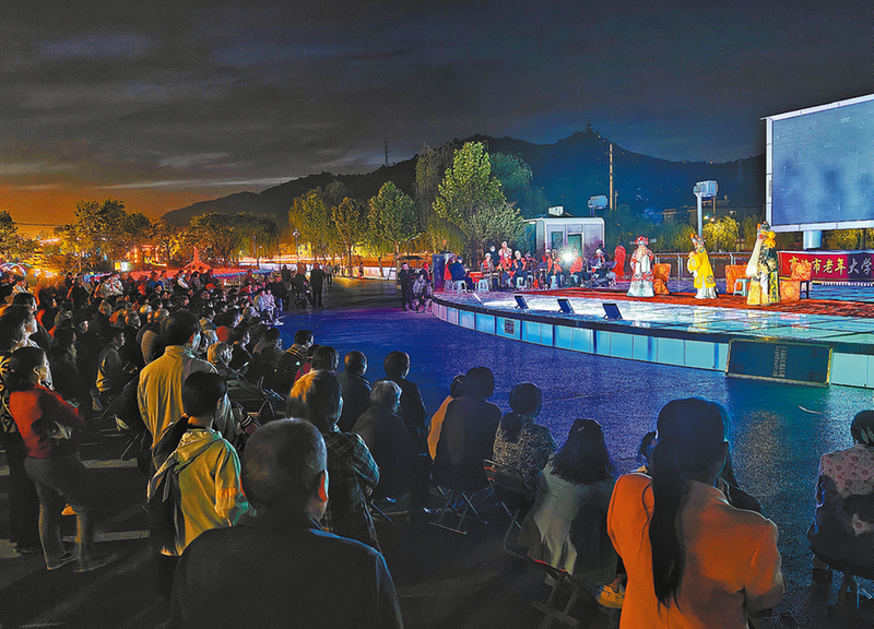 5月11日傍晚,群眾在南秦河生態公園津津有味地觀看戲曲演出。