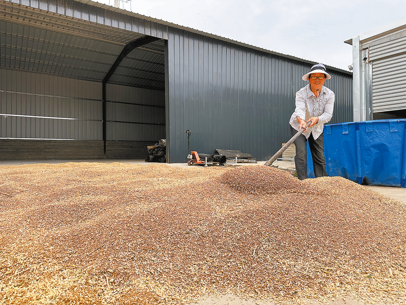 糧農晾曬剛剛收割的小麥