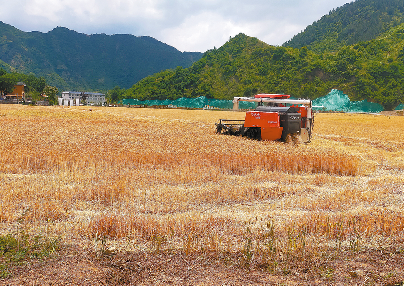隨著海拔較低的白浪社區的小麥成熟,商南縣4.3萬畝冬小麥也陸續成熟收割,目前已進入收割尾期。