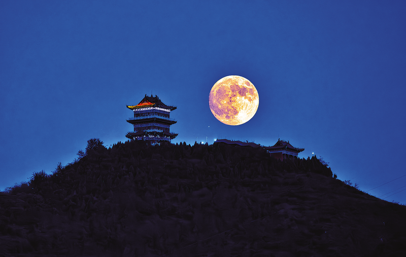 中秋節當天,在丹鳳縣拍到的月照金山美景。