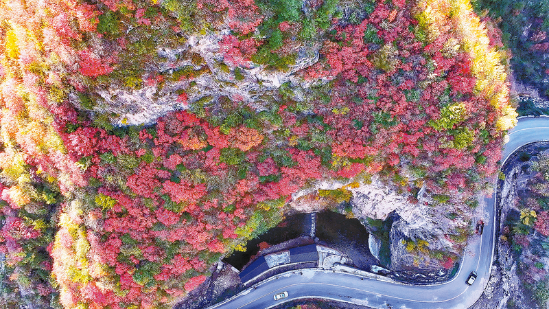 位于商州區牧護關鎮的秦嶺峽口紅葉迎來最佳觀賞期