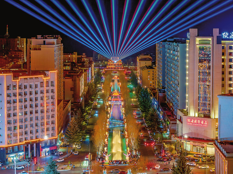 剛剛改造完成的商州區(qū)蓮湖公園城墻燈火璀璨,成為節(jié)日里新的打卡地。