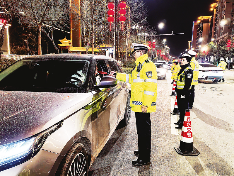 2月2日,柞水縣交警大隊民警在迎賓大道查處酒駕醉駕違法行為。(本報通訊員 涂思陽 攝)