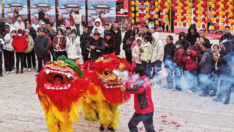 1月29日,在秦嶺天竺山景區游客服務中心舉辦的舞獅表演吸引了眾多游客駐足觀看。