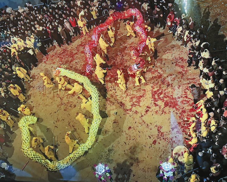 △2月10日至12日,柞水縣下梁鎮(zhèn)沙坪社區(qū)精心準備的舞瑞獅祥龍、劃車船燈等社火表演在社區(qū)輪番上演,絢麗的民俗表演服飾和激昂慷慨的鼓點將春節(jié)氣氛推向了高潮,讓群眾沉浸式感受傳統(tǒng)文化的獨特魅力。 (本報通訊員 陳 晨 攝)
