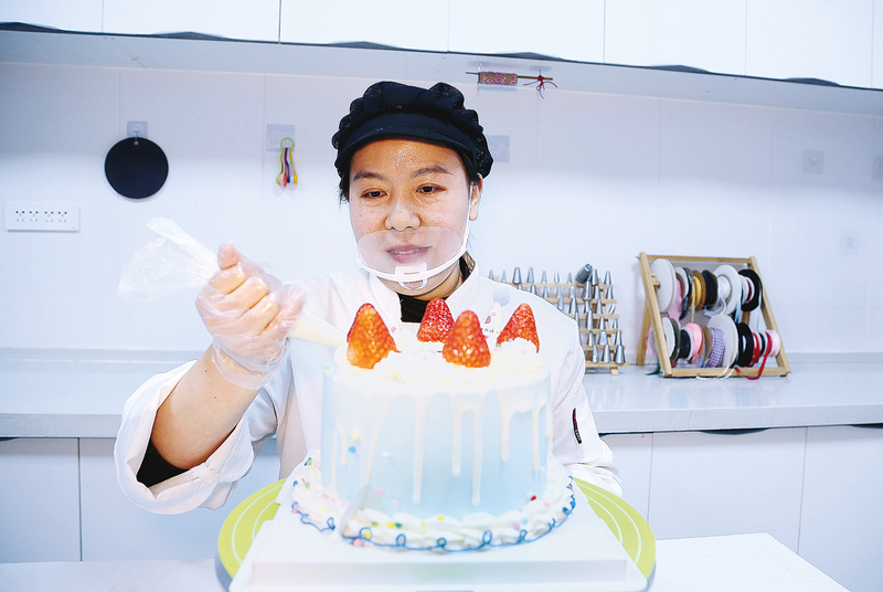 3月3日,烘焙師寇阿敏正在工作間制作顧客訂購的蛋糕。寇阿敏2016年進(jìn)入烘焙行業(yè),憑借著精湛手藝和獨(dú)特創(chuàng)意,做出的蛋糕、面包在朋友圈迅速走紅,她用堅(jiān)持與熱愛,實(shí)現(xiàn)了從作坊到人氣店鋪的華麗轉(zhuǎn)身。