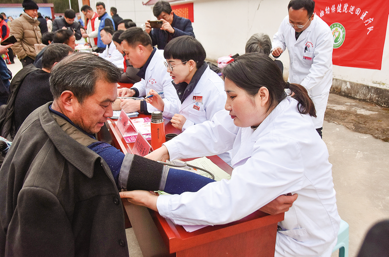 3月5日,鎮(zhèn)安縣開展文化、科技、衛(wèi)生“三下鄉(xiāng)”暨第三十三屆科技之春活動。圖為醫(yī)療工作者為農村群眾義診。 (本報通訊員 侯興華 攝)