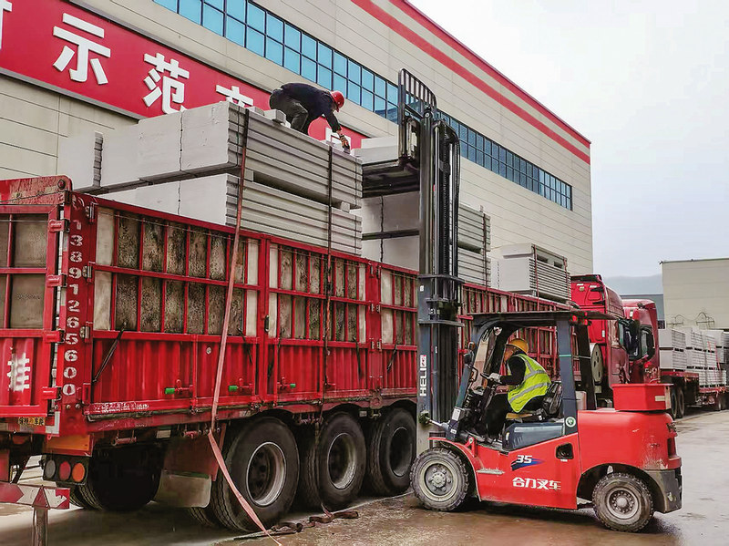 “這一車36包,全是建安置房用的!這建筑材料輕便又結實,客戶都說‘商洛嶺南造’的板材能免檢。”來自陜西涇陽的貨車司機賀建抹了把額頭上的汗珠后,一邊說著一邊麻利地往車上碼灰白色板材。