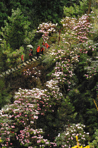 4月是高山杜鵑花的最佳觀賞期。清明假期,絡繹不絕的游人穿行在鎮(zhèn)安縣木王國家森林公園內,近距離欣賞“杜鵑染千峰”奇觀。