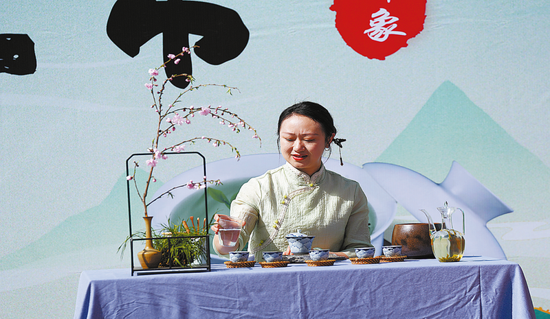 3月28日,鎮安縣2025年象園茶開采季活動拉開帷幕,茶藝師現場進行茶藝表演。