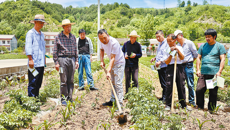 午后,在廟底村供港蔬菜基地里,洛南縣農(nóng)技中心高級農(nóng)藝師楊黎宏蹲在田壟間,指尖搓開一團板結的泥土:“近期天氣干旱,馬鈴薯也正是開花結薯期,一定要給充足的水分,保持土壤濕潤。”說完,他捧起一掬泥土給村民展示,“你看這塊地的濕潤度就有點低,要抓緊時間澆水……”