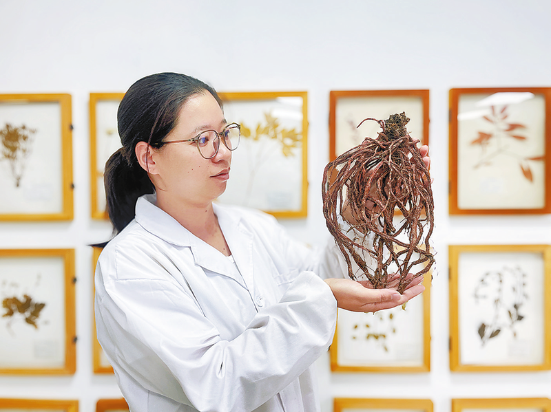 6月11日,在陜西天士力植物藥業有限責任公司,科研人員向記者展示丹參標本。