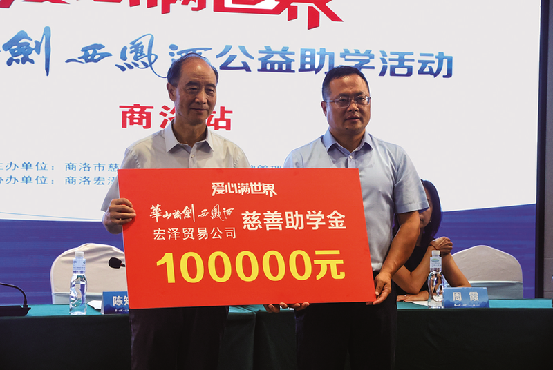 8月21日,市慈善協會、華山論劍西鳳酒2025年慈善公益助學活動儀式在商洛國際會議中心舉行,華山論劍品牌管理有限公司、商洛市宏澤貿易有限公司為100名商洛學子捐贈助學金10萬元。 (本報記者 耿 錕 攝)