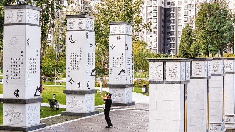 商洛市中心城區(qū)四皓街東北側(cè)的四皓公園里,四皓雕塑、墻、柱等景觀及其鐫刻在上面的一首首與四皓相關(guān)的古今詩(shī)詞,讓這處人文景觀顯得更加厚重。