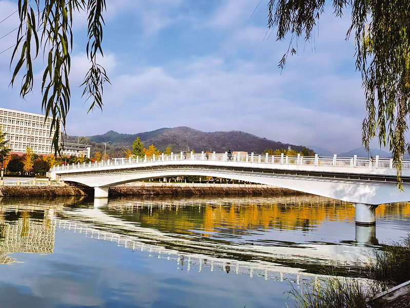 △在市區(qū)丹江公園,碧藍(lán)而高遠(yuǎn)的天空、白色的橋和金色的銀杏葉倒映在清澈的河水中,如同一幅秋日油畫(huà)。 ?市區(qū)濱江銀杏公園內(nèi),市民在高大的銀杏樹(shù)間散步,盡顯秋日的愜意。